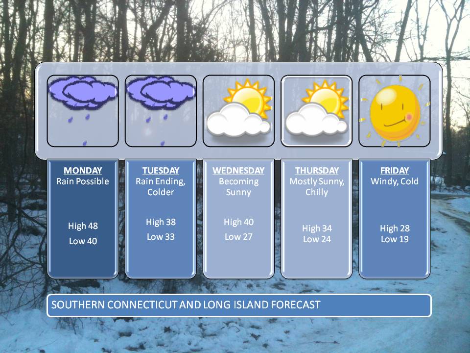 In the Longer term the PNA is forecast to remain neutral to slightly negative for the next couple weeks which essentially means I expect Southern New England to be a battle ground zone between warm and cold air-masses. This can be good for significant weather events in the area. Even that is wishful thinking at this point as there is no evidence through the early part of the long range to support major snowfall. Both the GFS and the ECMWF continue to show additional robust shots of cold air around the 216+ forecast hour period. That Can’t be ignored either. Your five day forecast graphic can be seen below. Have a great day everybody!