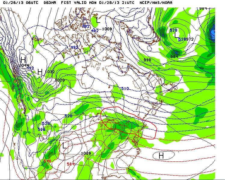 We’ve seen this before – that trough digging in the west and ridging starting to show on in the east. A brief round of snow is possible changing over to ice and rain depending on how long the precipitation lasts. That low in the Rockies will then intensify and track northeast up into the central US/western Great Lakes. It will work to really pump up that ridge in the east on Tuesday. Get ready for a spell of very warm weather – especially Wednesday. Temperatures could make it well into the 50’s for some areas. Even that won’t last – it looks like some cold will follow for the beginning of February! Let’s save that for the next blog topic though. Here’s the Five Day – Have a Great Afternoon!