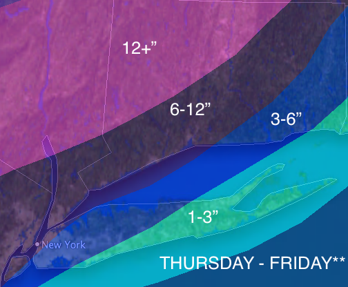 Cold air rushes back in late tomorrow night and could bring some additional light snow accumulations to inland areas. My benchmark across the middle of the tri state is 6″, less in southern areas, more North and West.