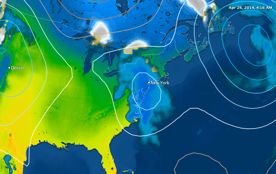 A shortwave trough just east of the rockies, moves in late tomorrow from the west. An associated surface low tracks into New England on saturday, bringing in some unsettled weather for the first half of the weekend. Clouds increase late Friday, with some rain developing late night and continuing into Saturday. Enjoy!