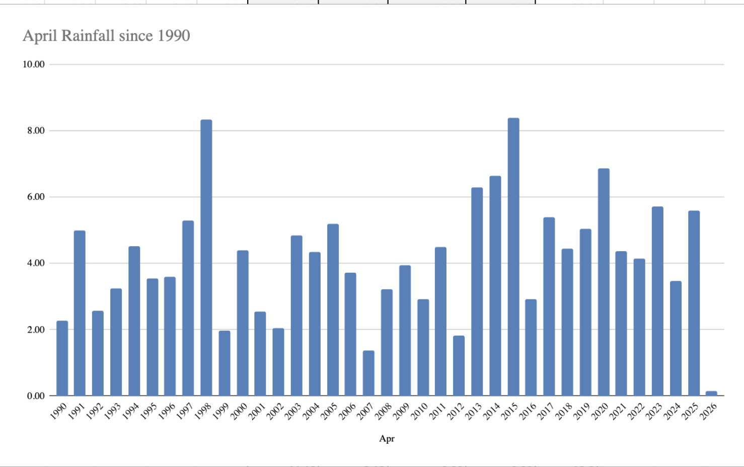 Aside from the notorious drought year of 2007, no other year will come close assuming we don’t see any significant rainfall between now and the end of the month.